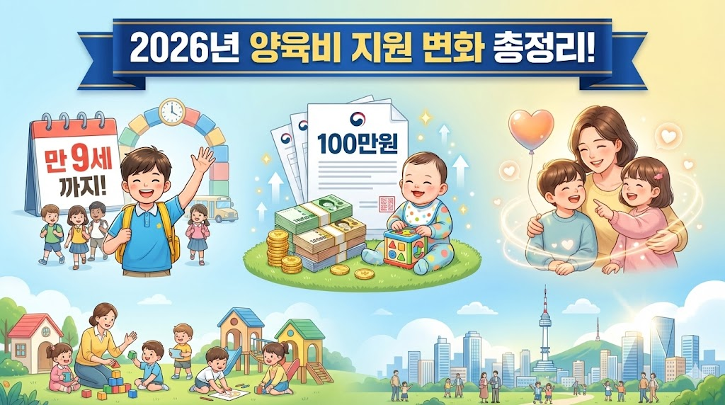 2026년 양육비 지원 제도 달라지는 점 총정리! 아동수당 만 9세 확대, 0세 부모급여 100만 원 유지, 서울형 아이돌봄비까지 한눈에 정리했어요.