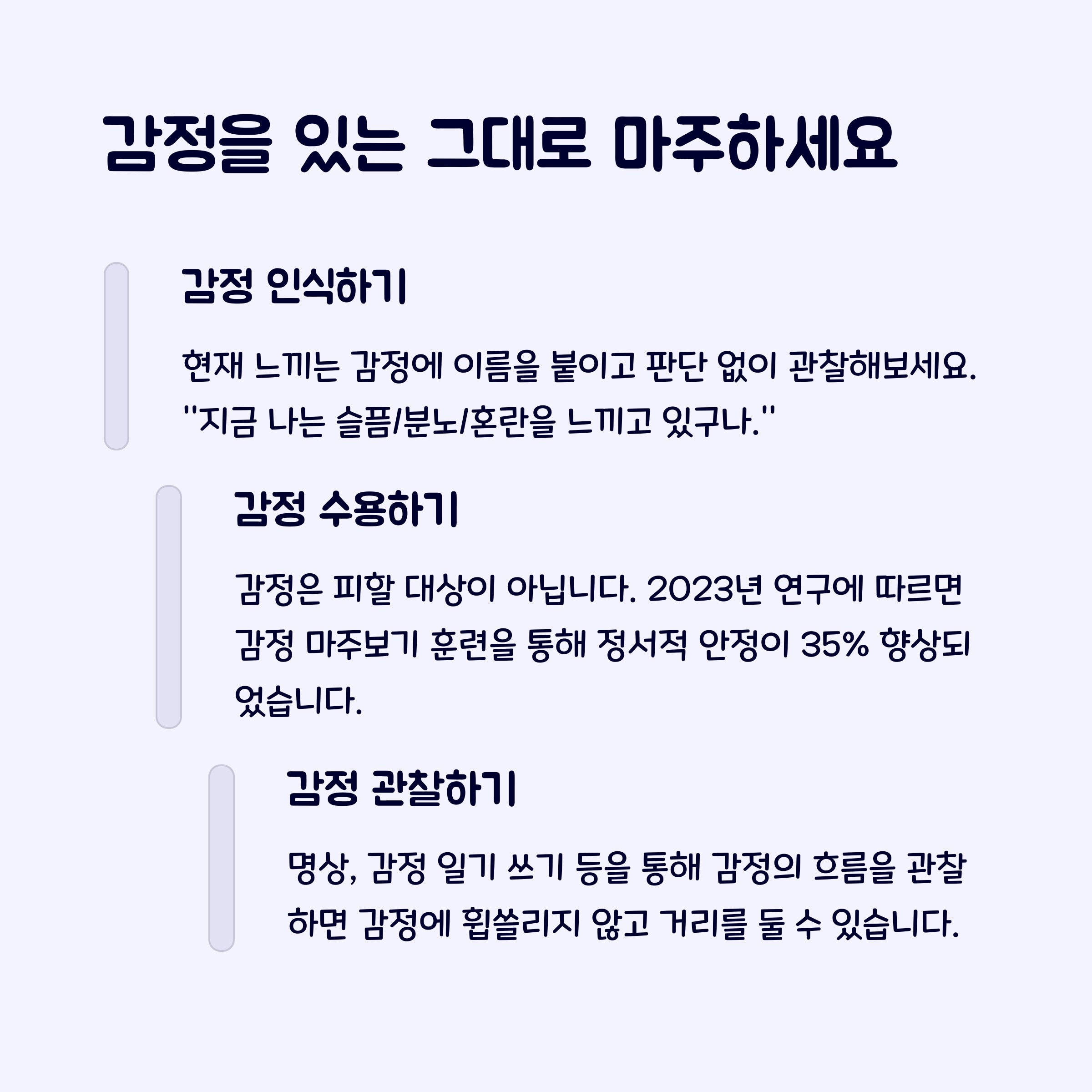 | 감정 정리란? | 감정을 억누르지 않고 그대로 바라보는 과정입니다 |