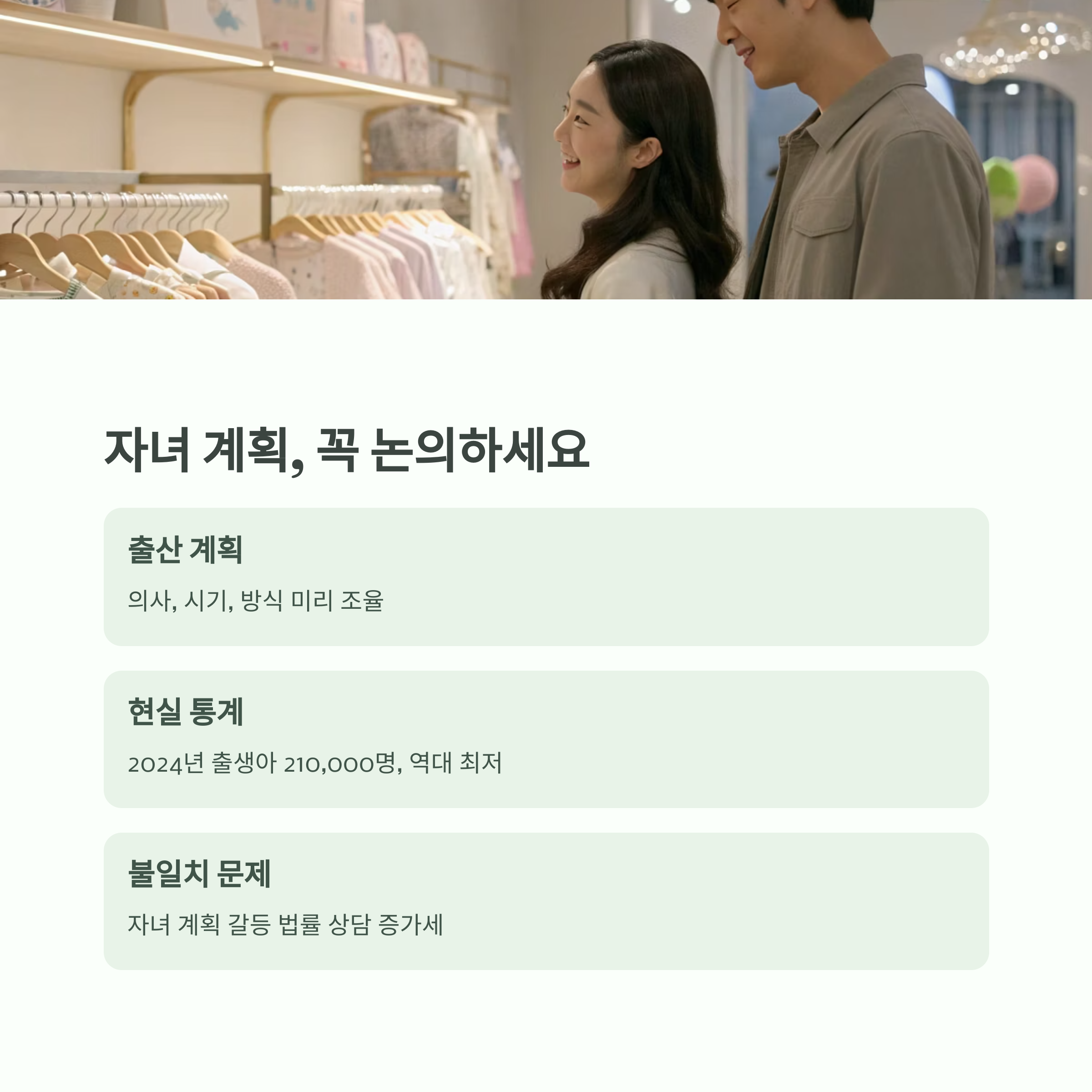 | 경제력 차이에서 오는 갈등을 줄이는 데 효과적입니다. | 서로 다른 양육 철학을 조율하는 데 도움이 됩니다. | 가족 갈등 예방 및 소통 방식을 설정할 수 있습니다. |