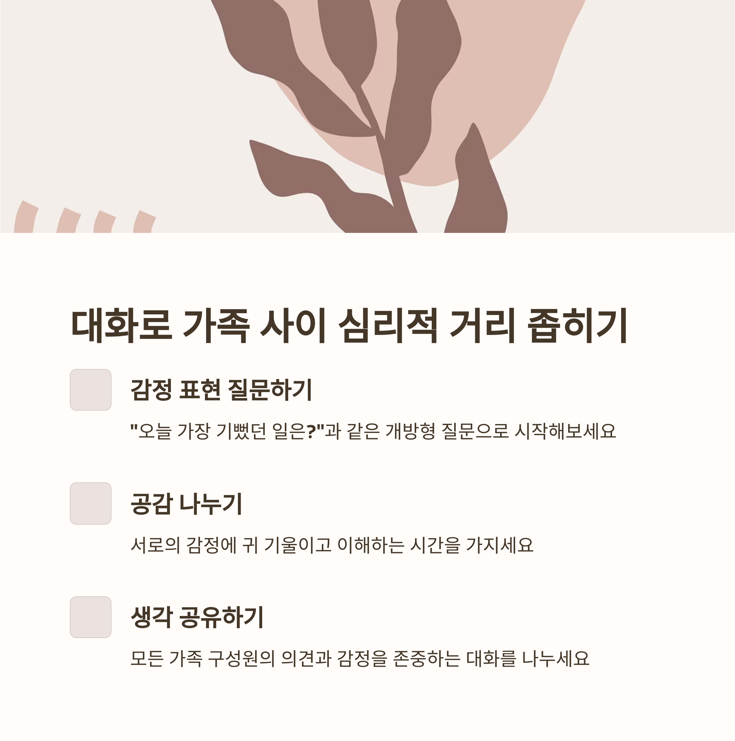 | 공감 대화법 | 긍정 표현 | 유대감 형성 |