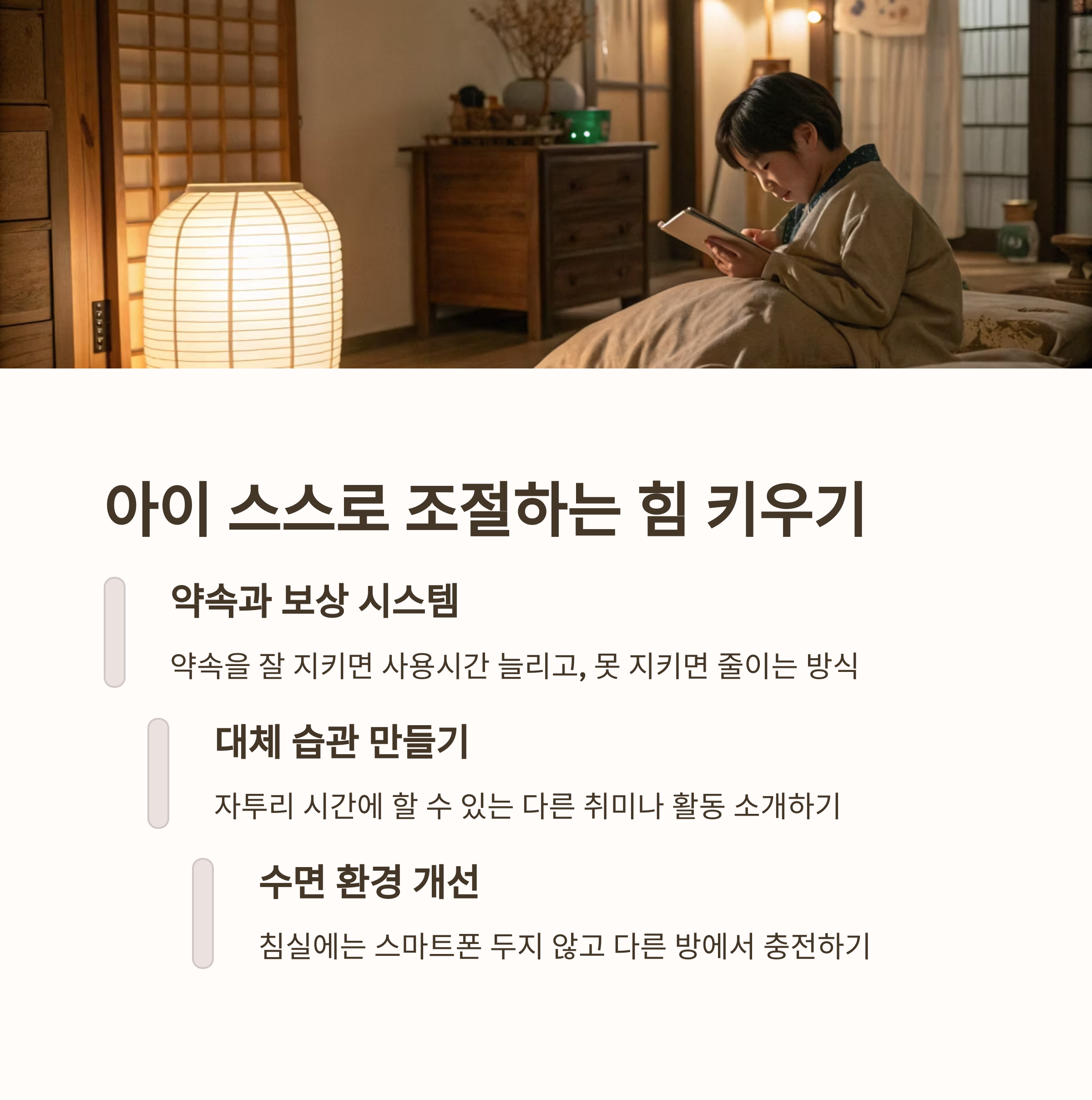 | 아이의 몰입 패턴을 파악해야 올바른 대응이 가능합니다. | 공감, 질문, 협의형 표현으로 갈등을 줄일 수 있습니다. | 스마트폰 문제 해결을 위한 부모 교육도 중요합니다. |