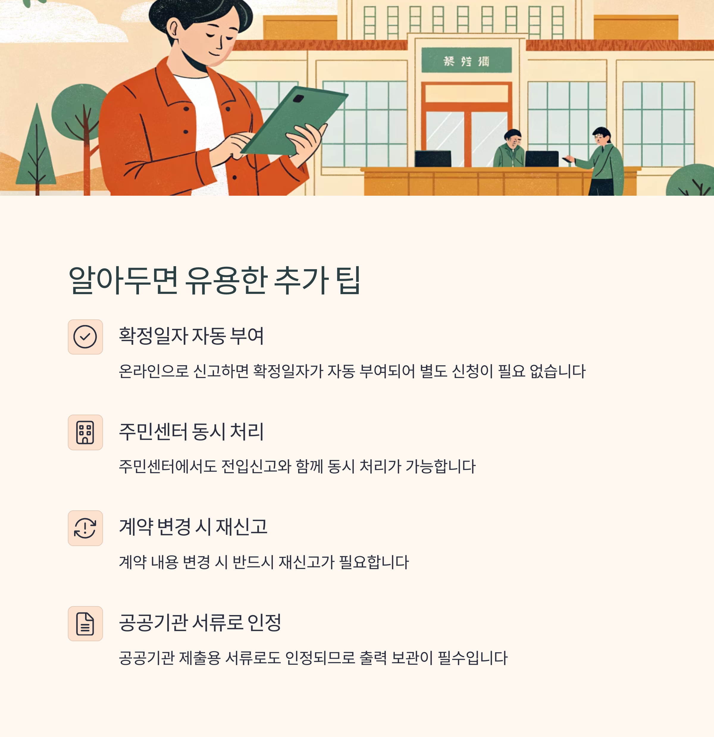 - 온라인으로 신고하면 확정일자가 자동 부여되어 별도 신청 불필요