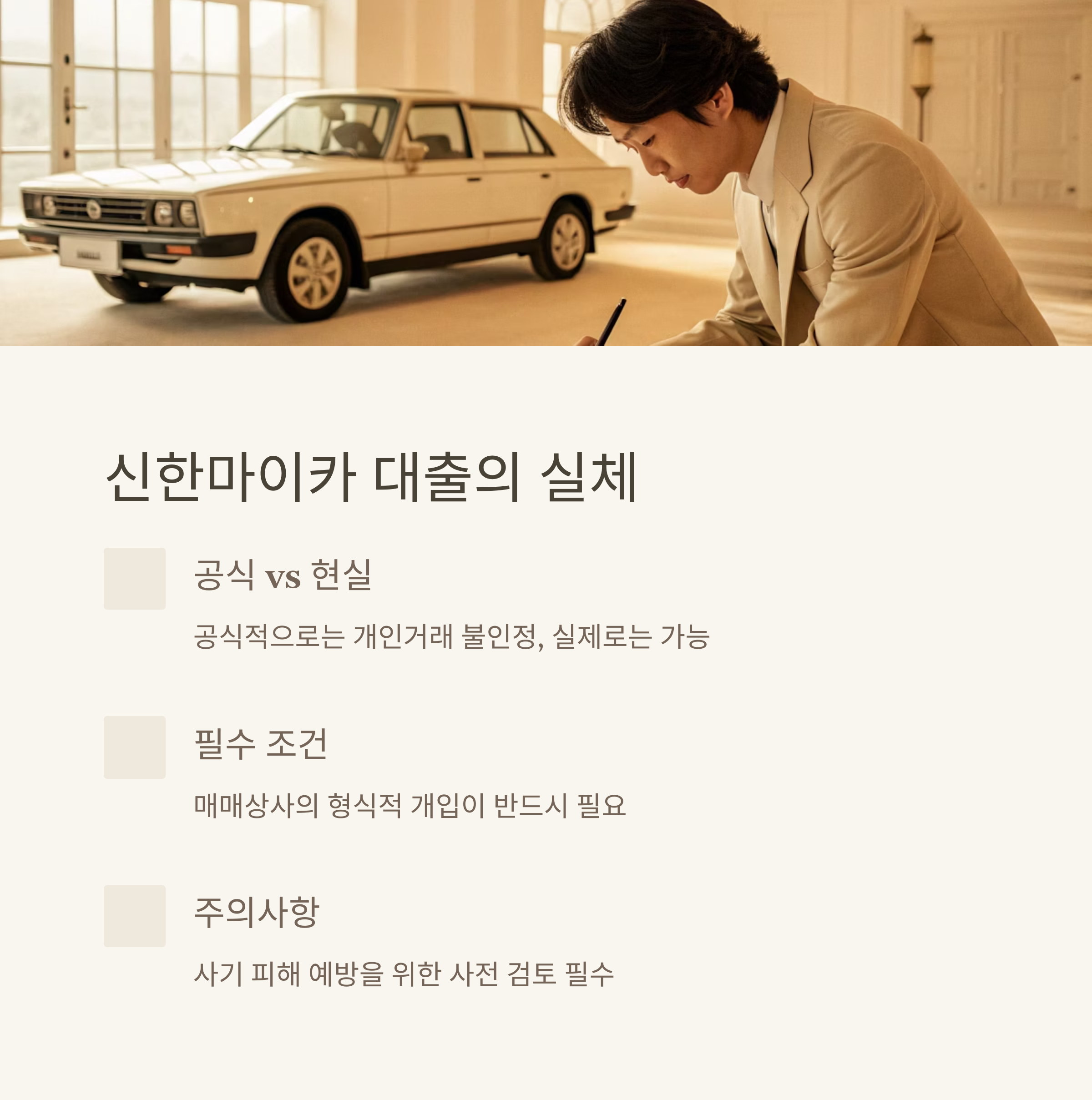 개인간 중고차 거래, 신한마이카 대출로 진짜 현실적으로 가능할까요? 공식 안내와 실제 현장 이야기는 어떻게 다를까요?