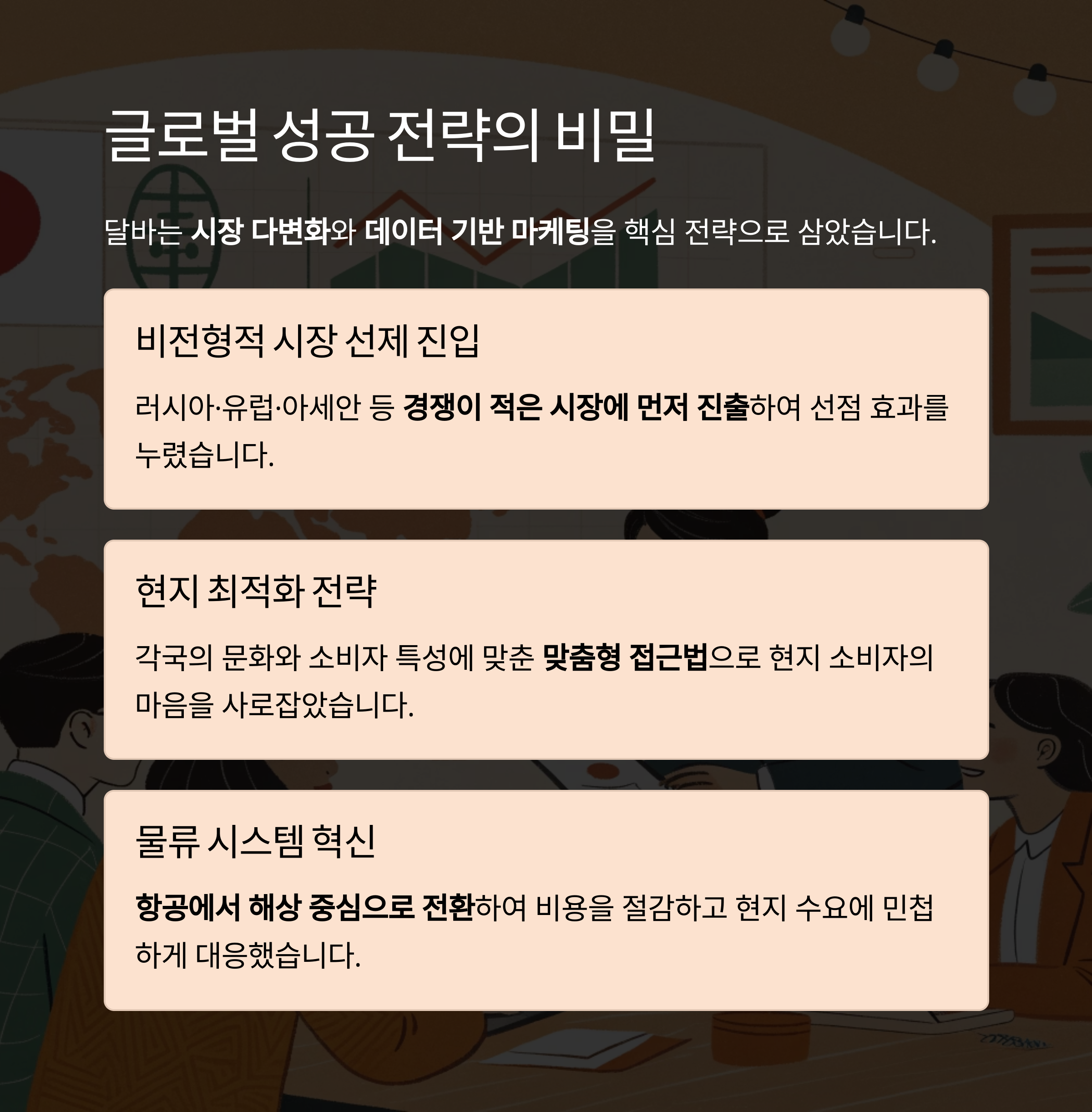 러시아·유럽·아세안 등 비전형적인 시장에 선제 진입했고, 각국 현지에 최적화된 전략으로 접근했습니다.