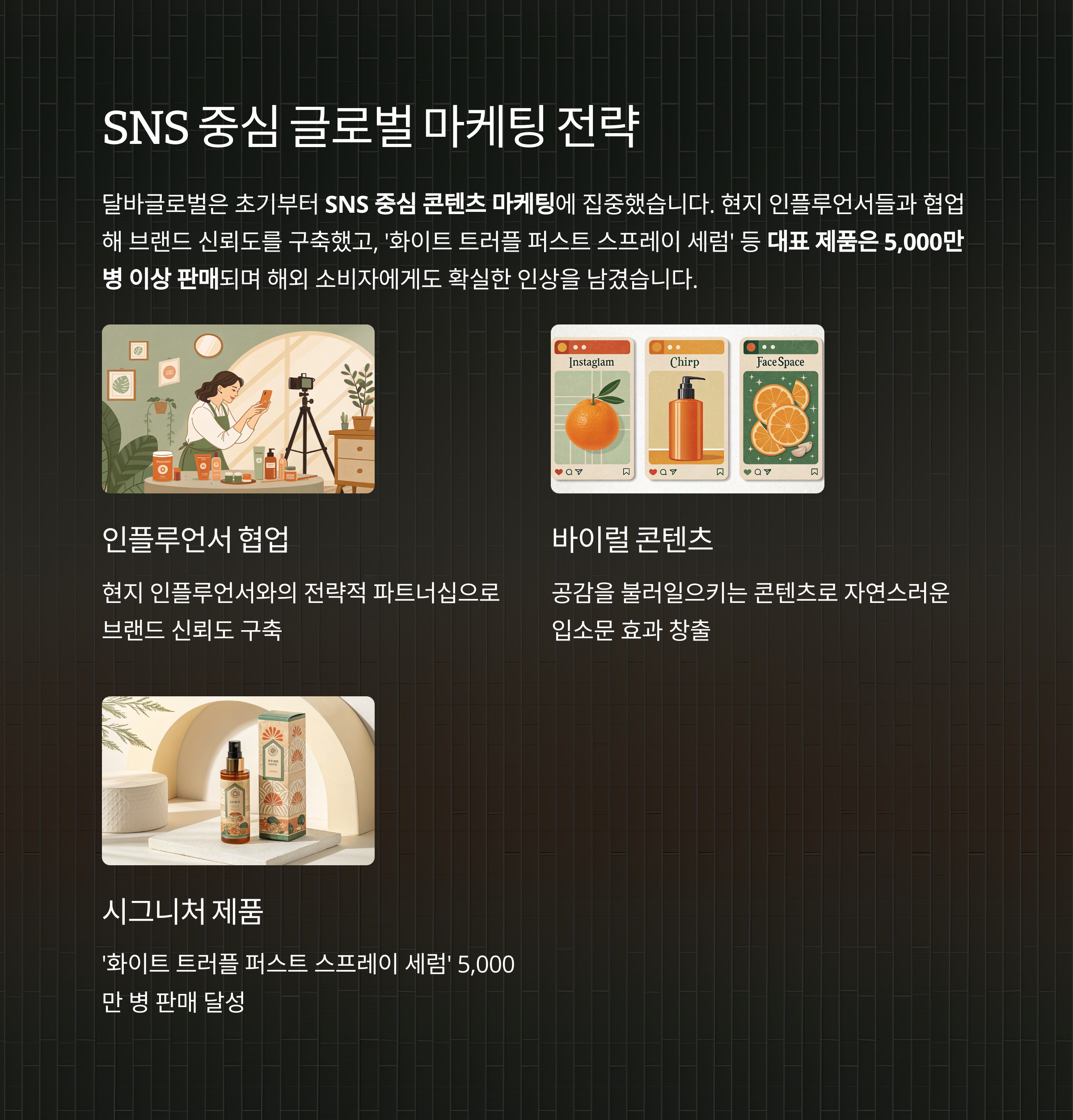 달바글로벌은 초기부터 SNS 중심 콘텐츠 마케팅에 집중했습니다.