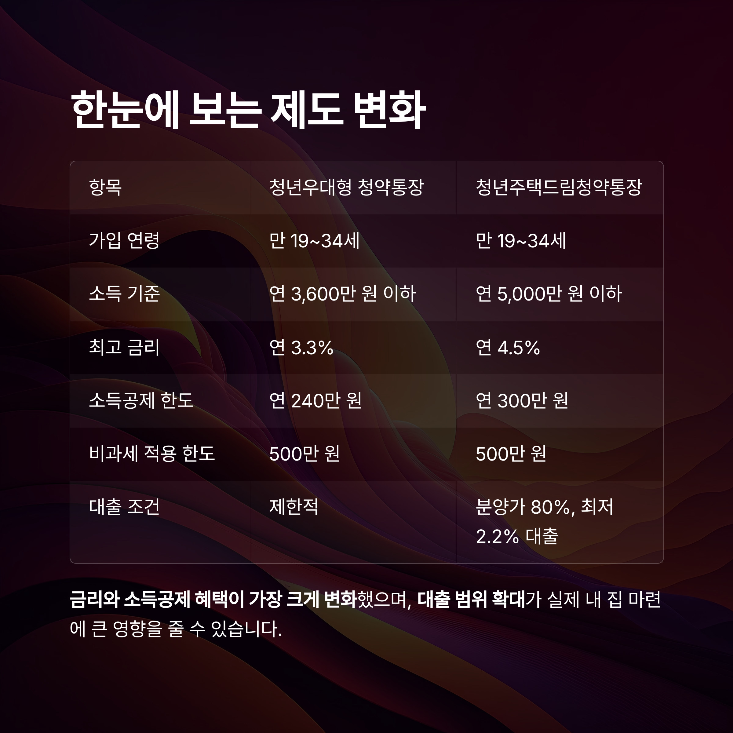 청년주택드림청약통장은 기존 청년우대형 주택청약종합저축을 대체하며