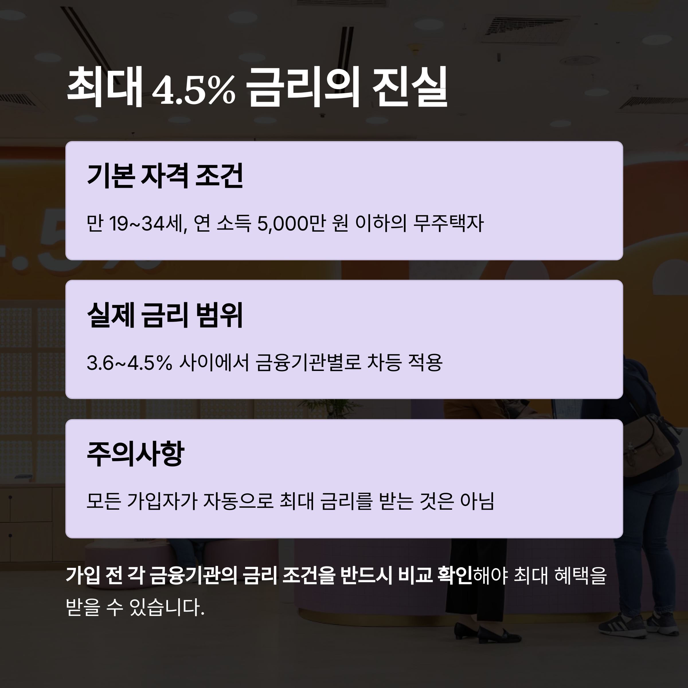 하지만 금리는 금융기관별 차이가 있으며, 모든 가입자가 자동으로 4.5%를 받는 것은 아닙니다.