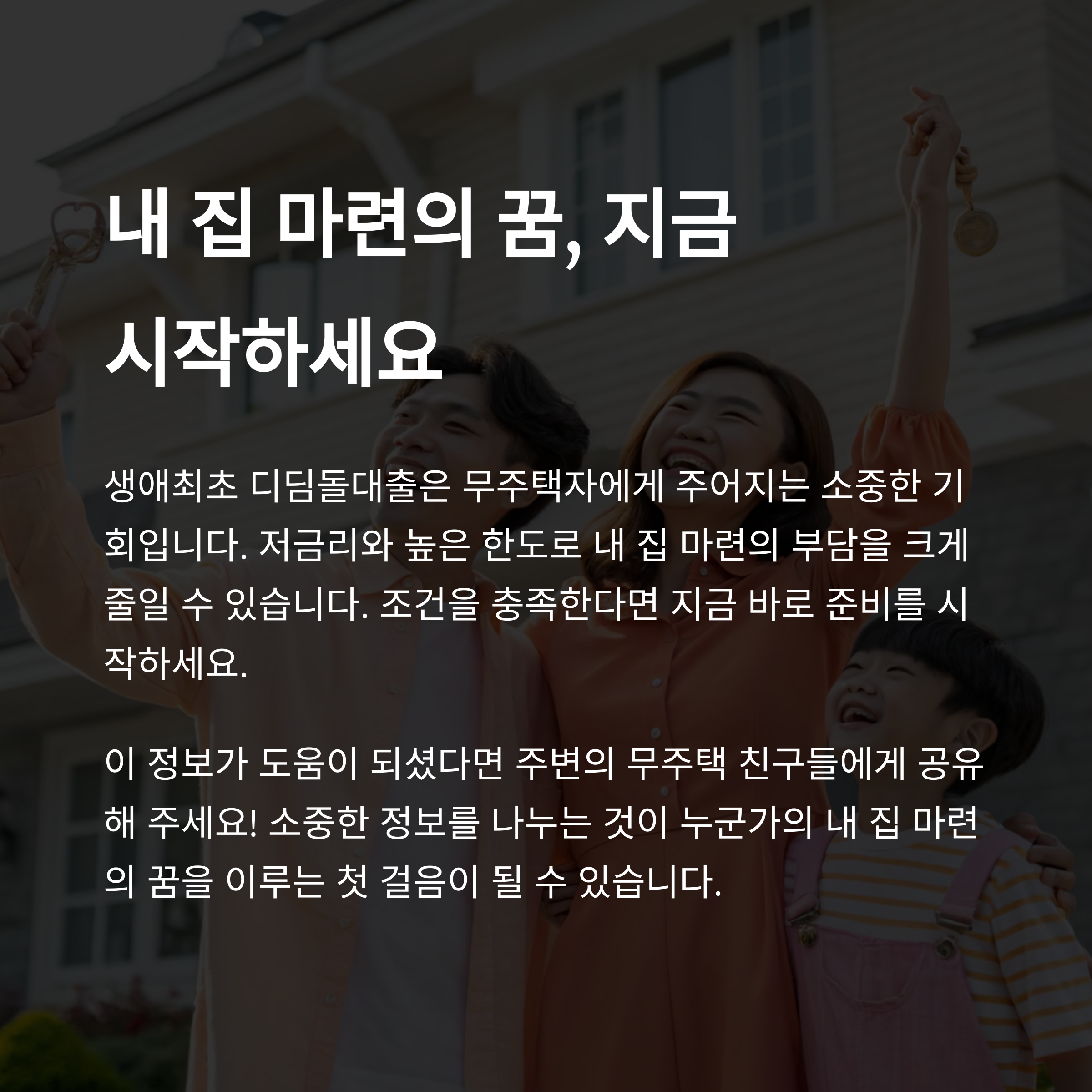 생애최초 디딤돌대출은 무주택자의 내 집 마련을 지원하기 위한 정책입니다.