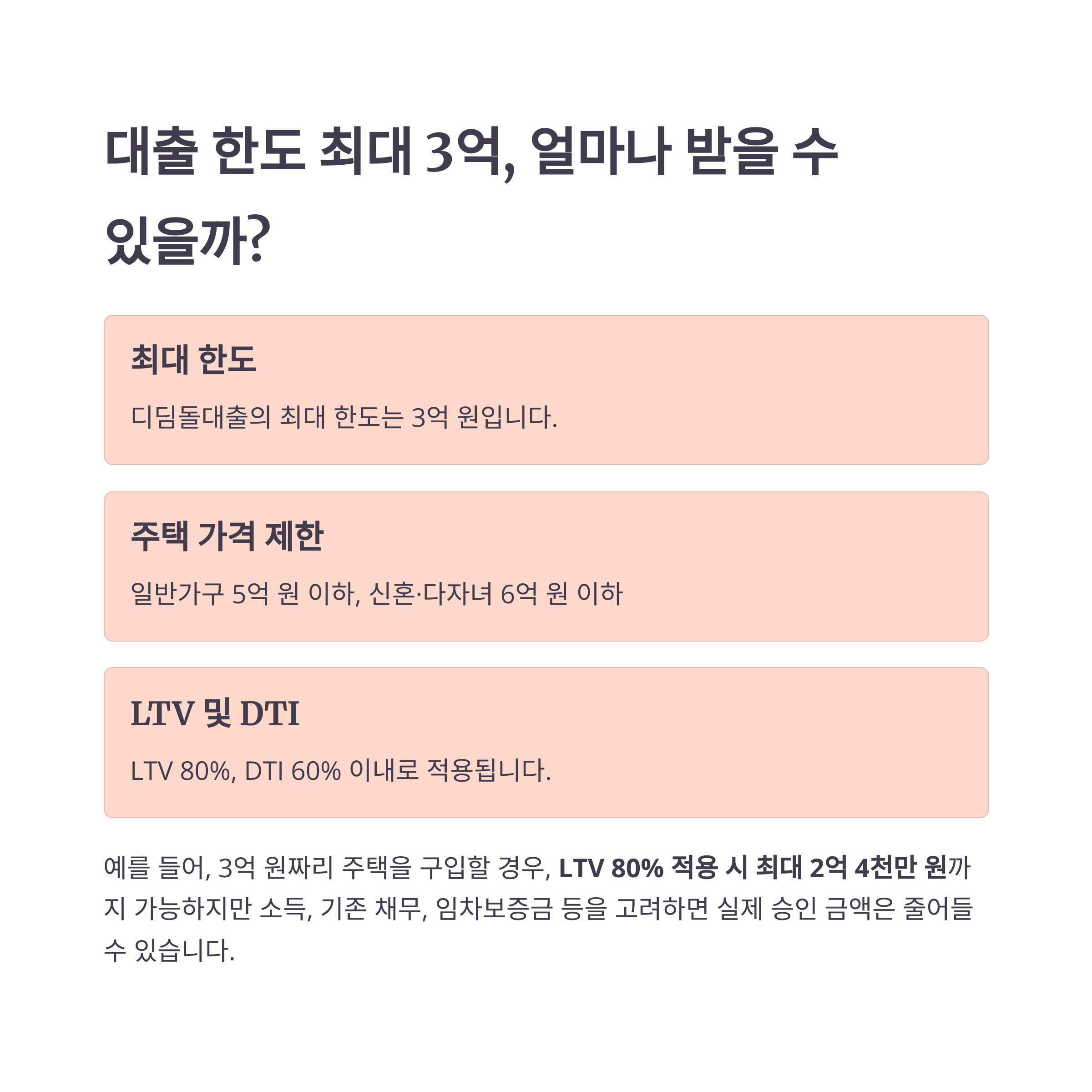 디딤돌대출의 최대 한도는 3억 원입니다.