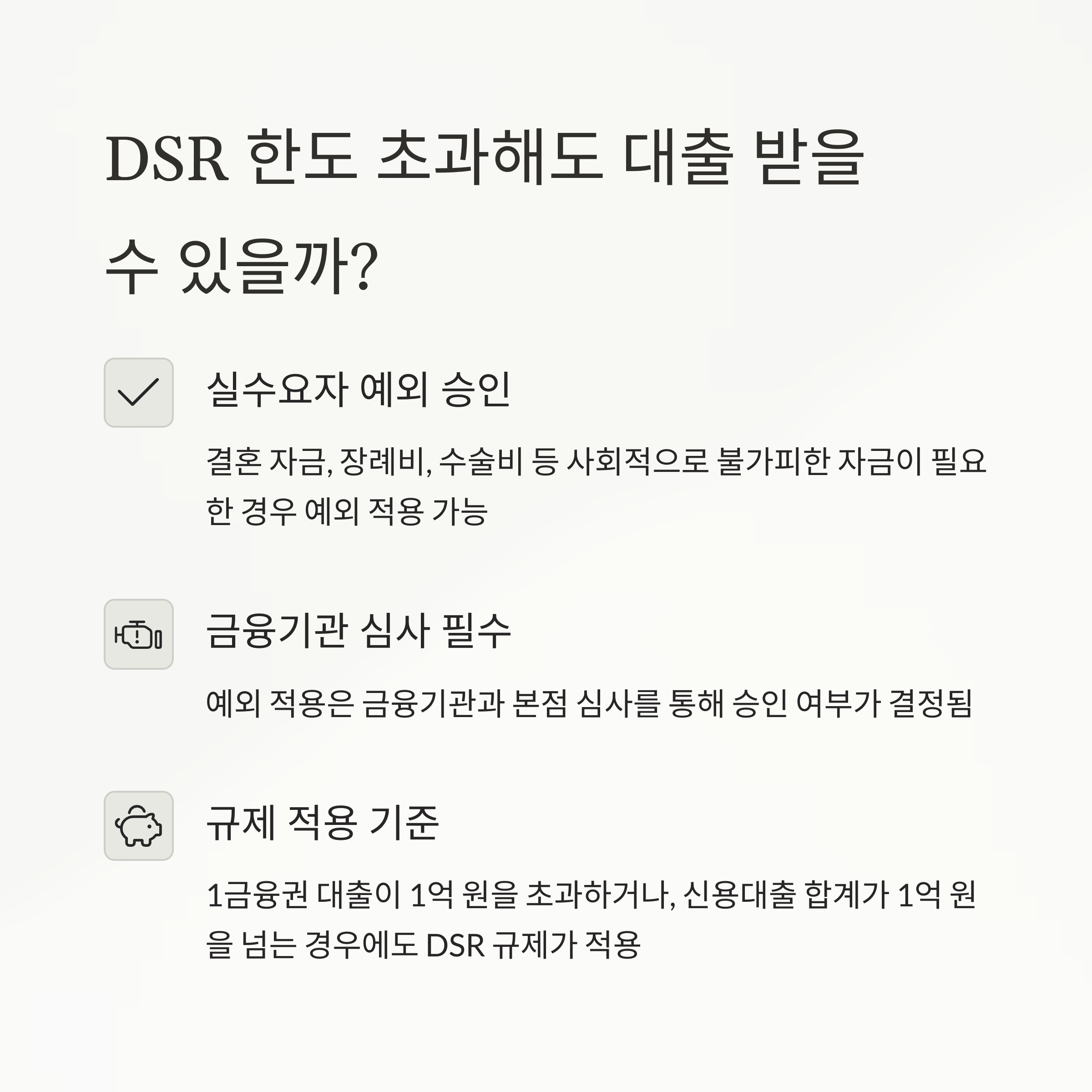 DSR 규제가 강화되는 가운데, 예외 조건을 잘 활용하면 대출 가능성이 열립니다.