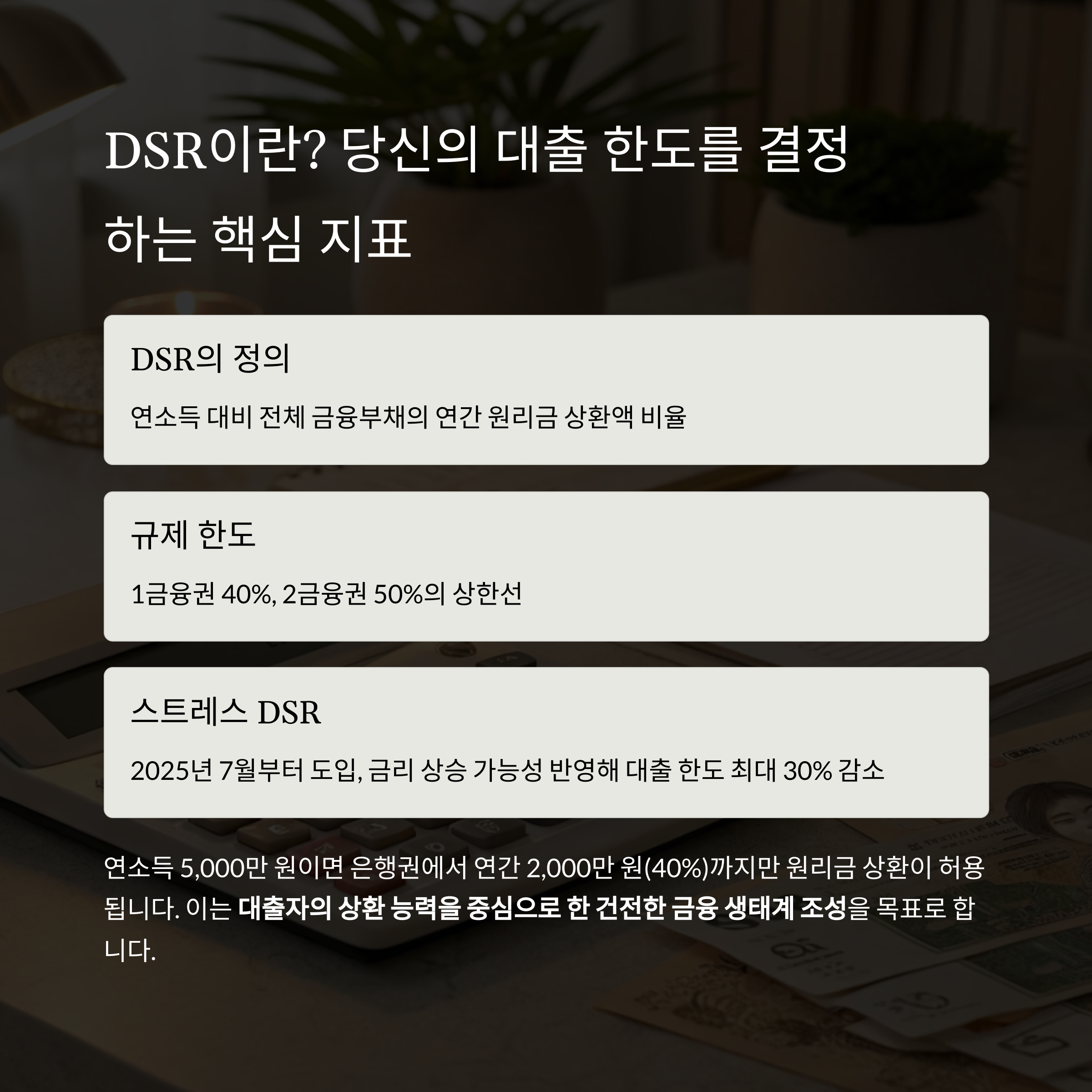 | 은행권 DSR 비율 | 40% (2025년 7월부터 스트레스 금리 반영) |