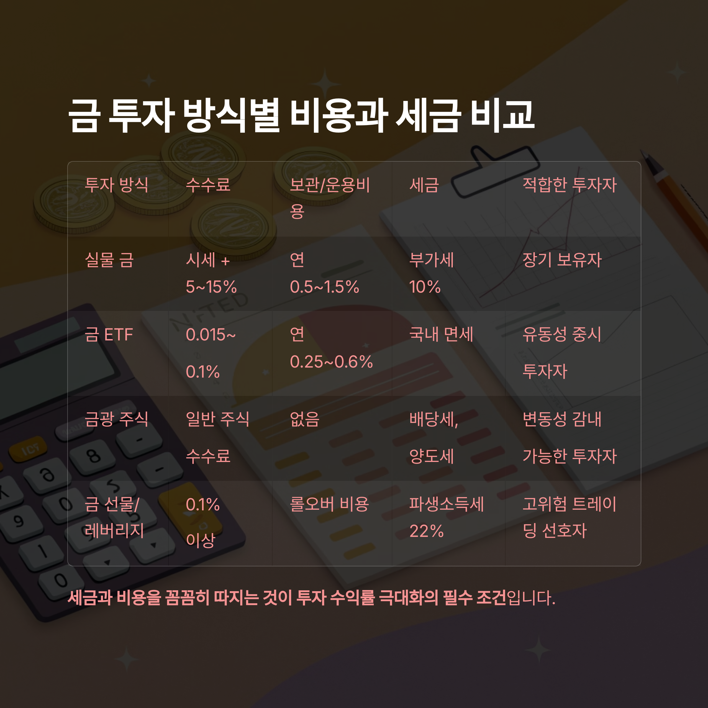 다양한 금 투자 방식의 비용·세금 비교입니다.