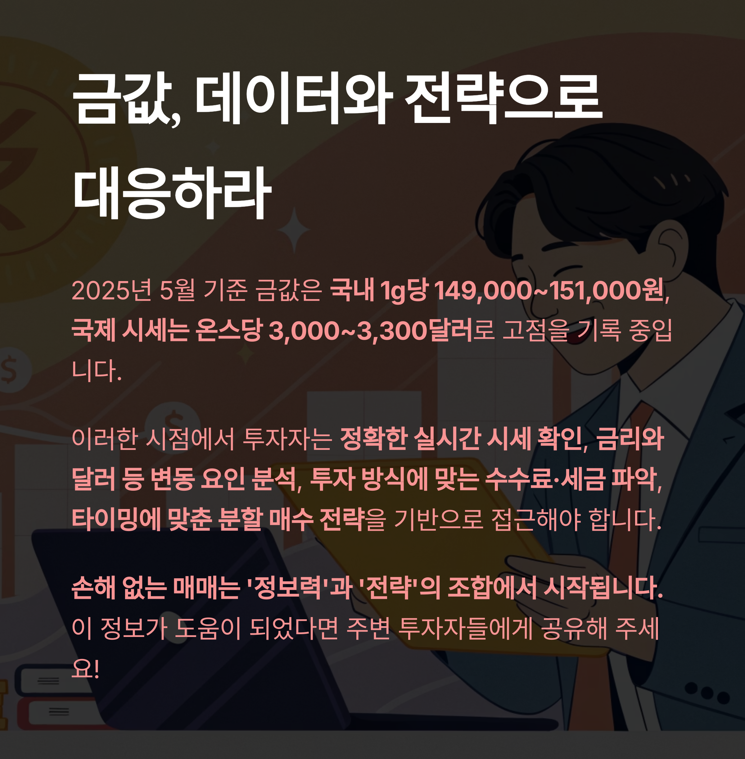 2025년 5월 기준 금값은 국내 1g당 149,000~151,000원, 국제 시세는 온스당 3,000~3,300달러로 고점을 기록 중입니다.