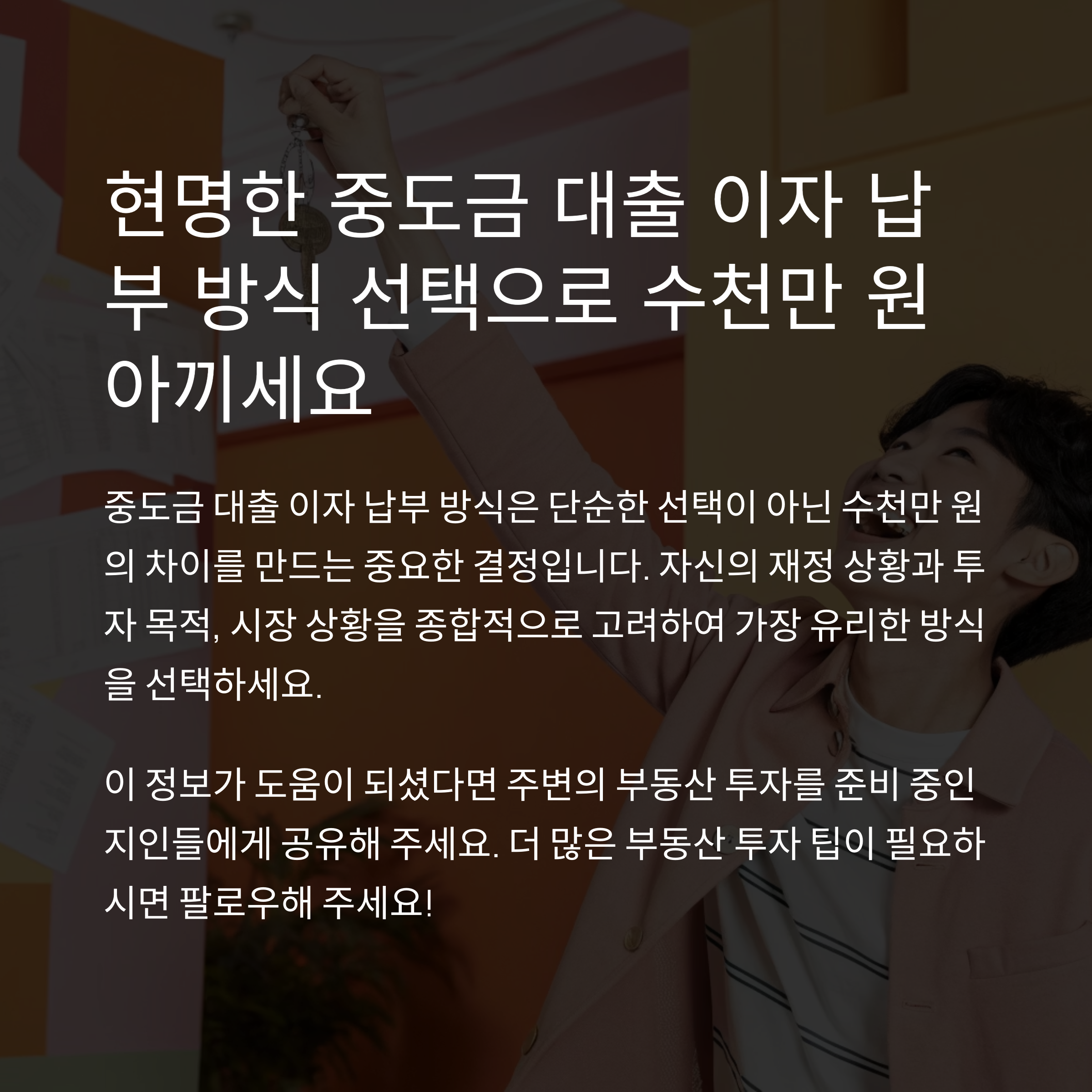 "내게 유리한 방식은 무엇인가?" 이 질문에 답하려면 자금 상황, 투자 목적, 향후 금리 흐름을 종합적으로 고려해야 합니다