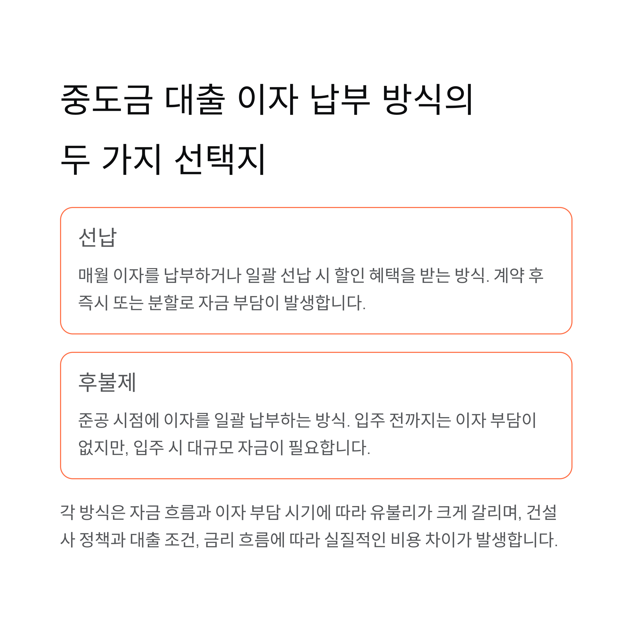 중도금 대출 이자, 선납과 후불제의 핵심 차이는?