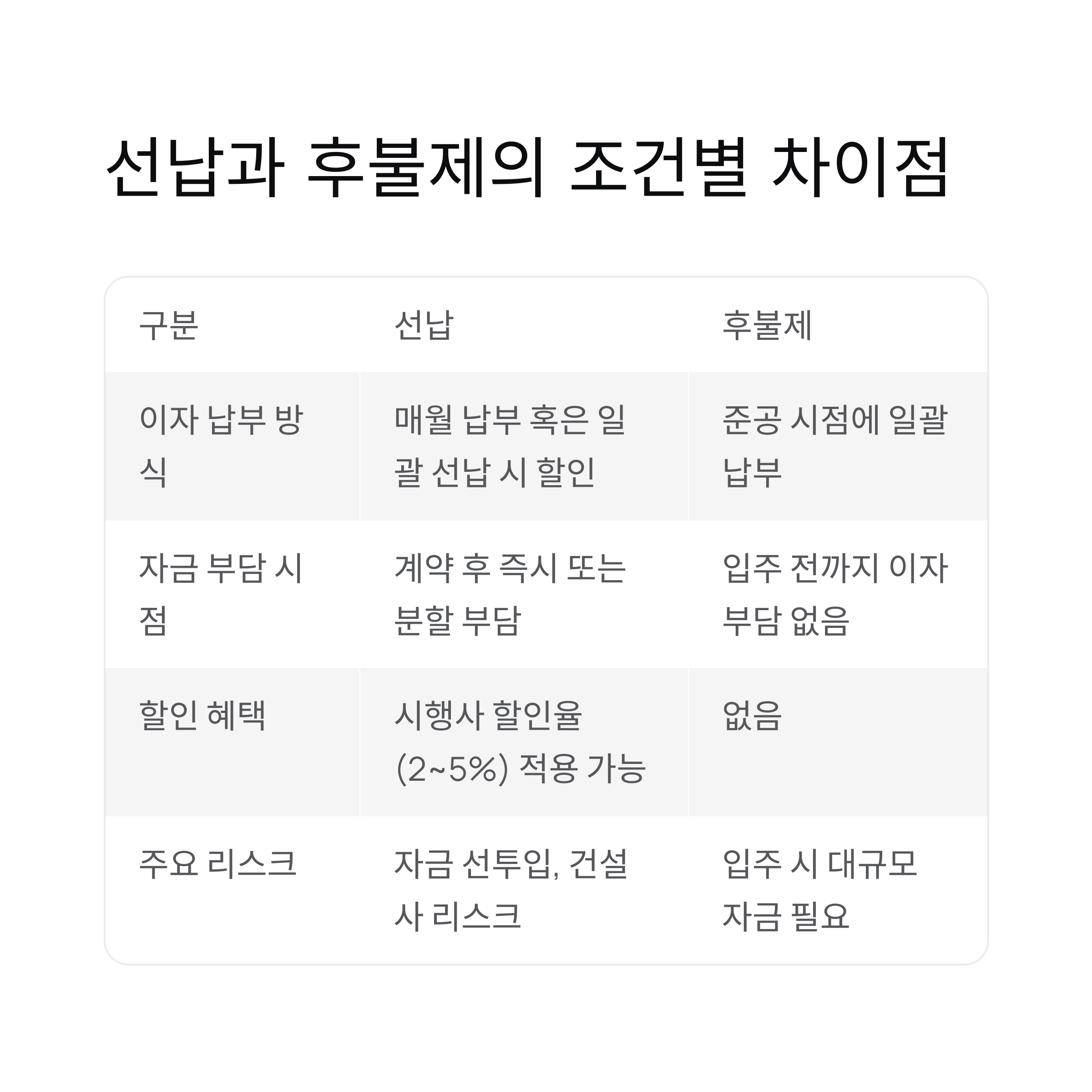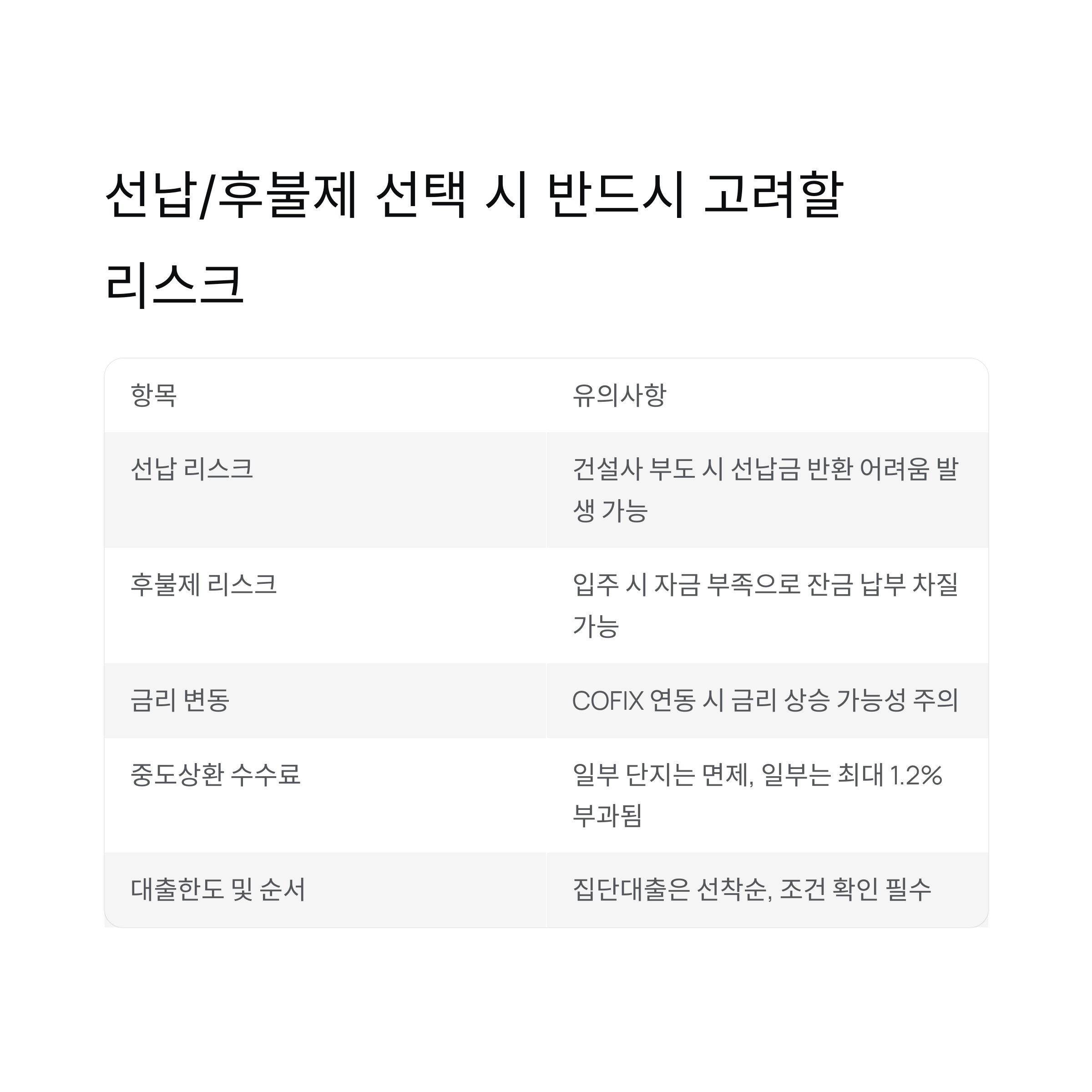 | 후불제 리스크 | 입주 시 자금 부족으로 잔금 납부 차질 가능 |