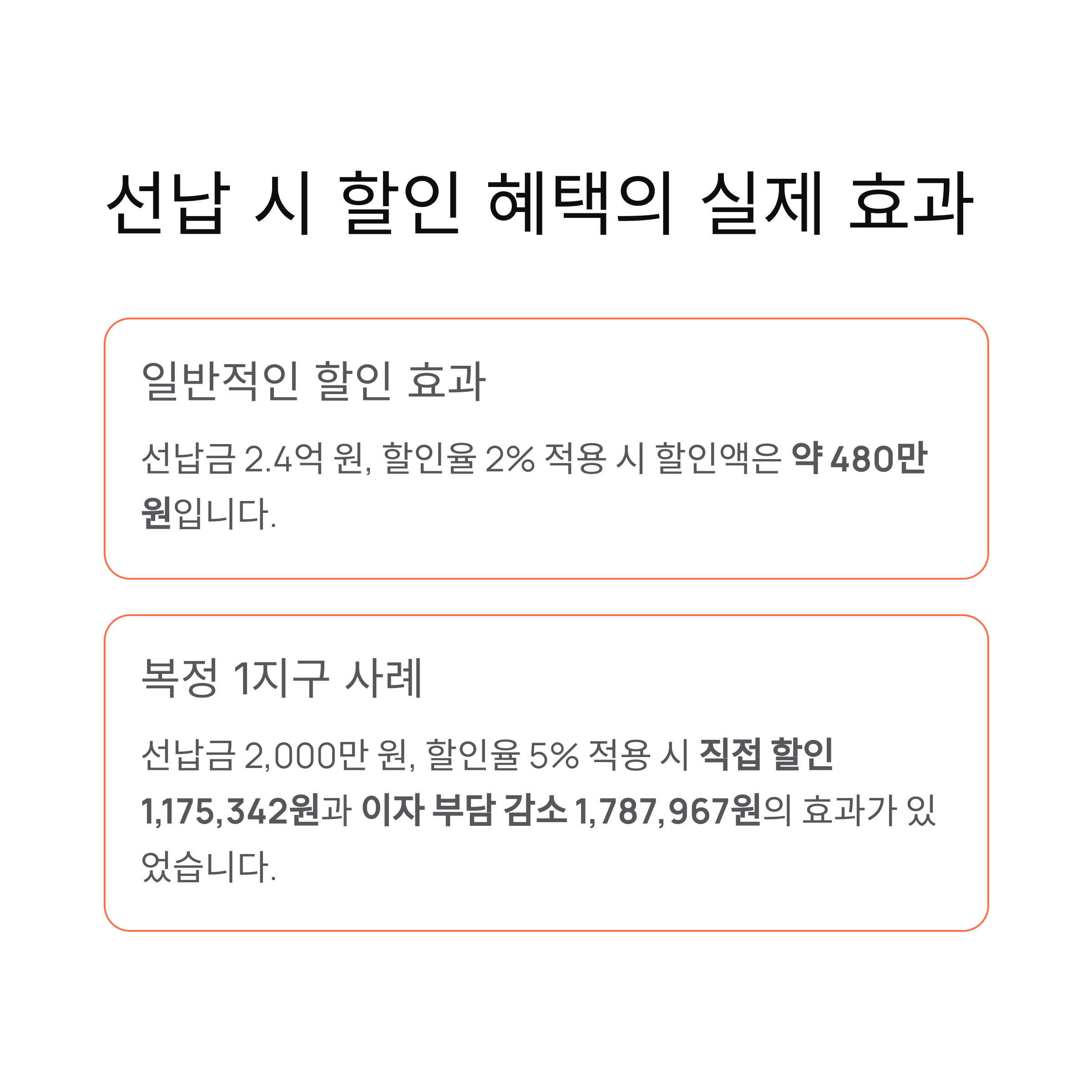 실제 사례를 통해 선납 시 받을 수 있는 할인 효과를 확인해보겠습니다.