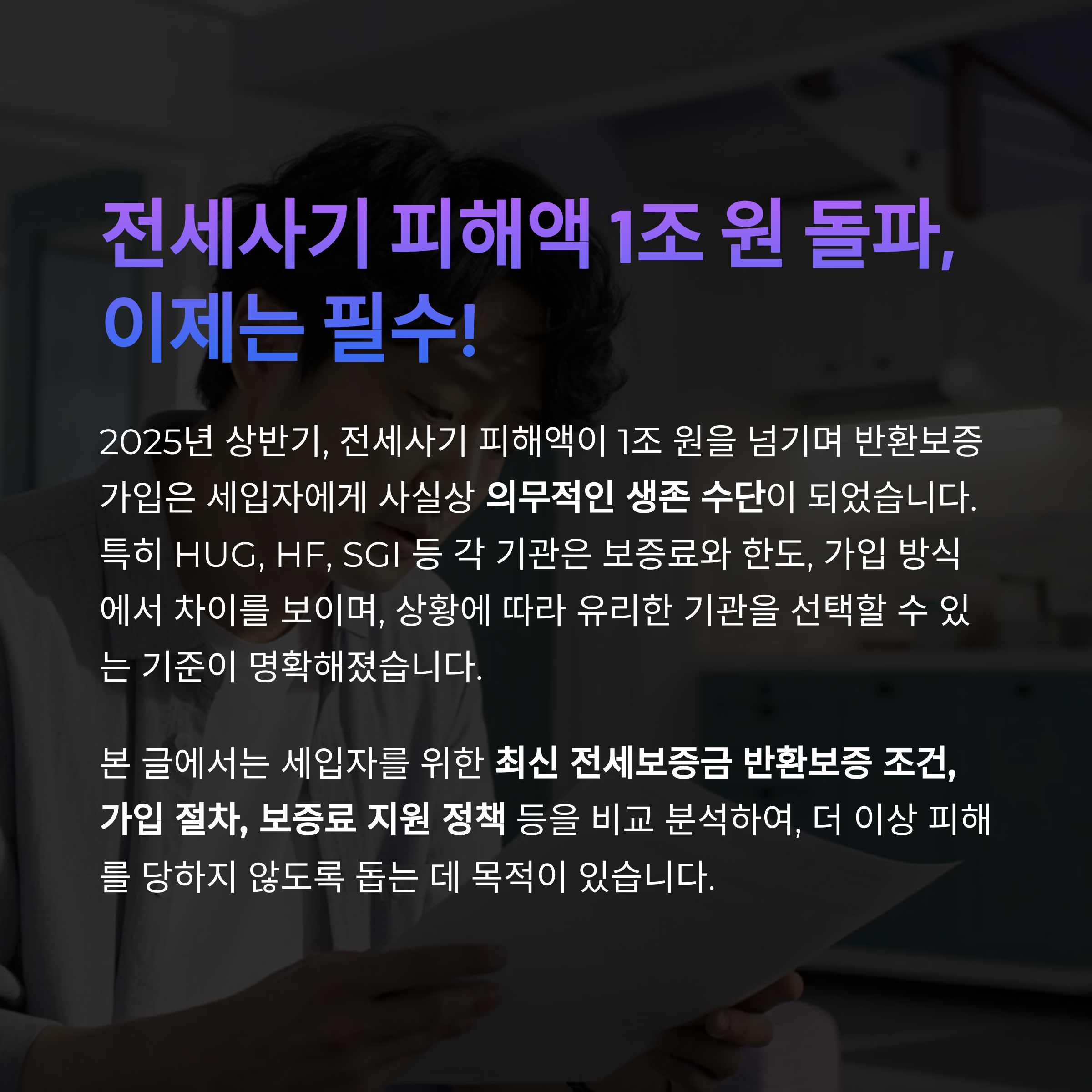 2025년 상반기, 전세사기 피해액이 1조 원을 넘기며 반환보증 가입은 세입자에게 사실상 의무적인 생존 수단이 되었습니다.