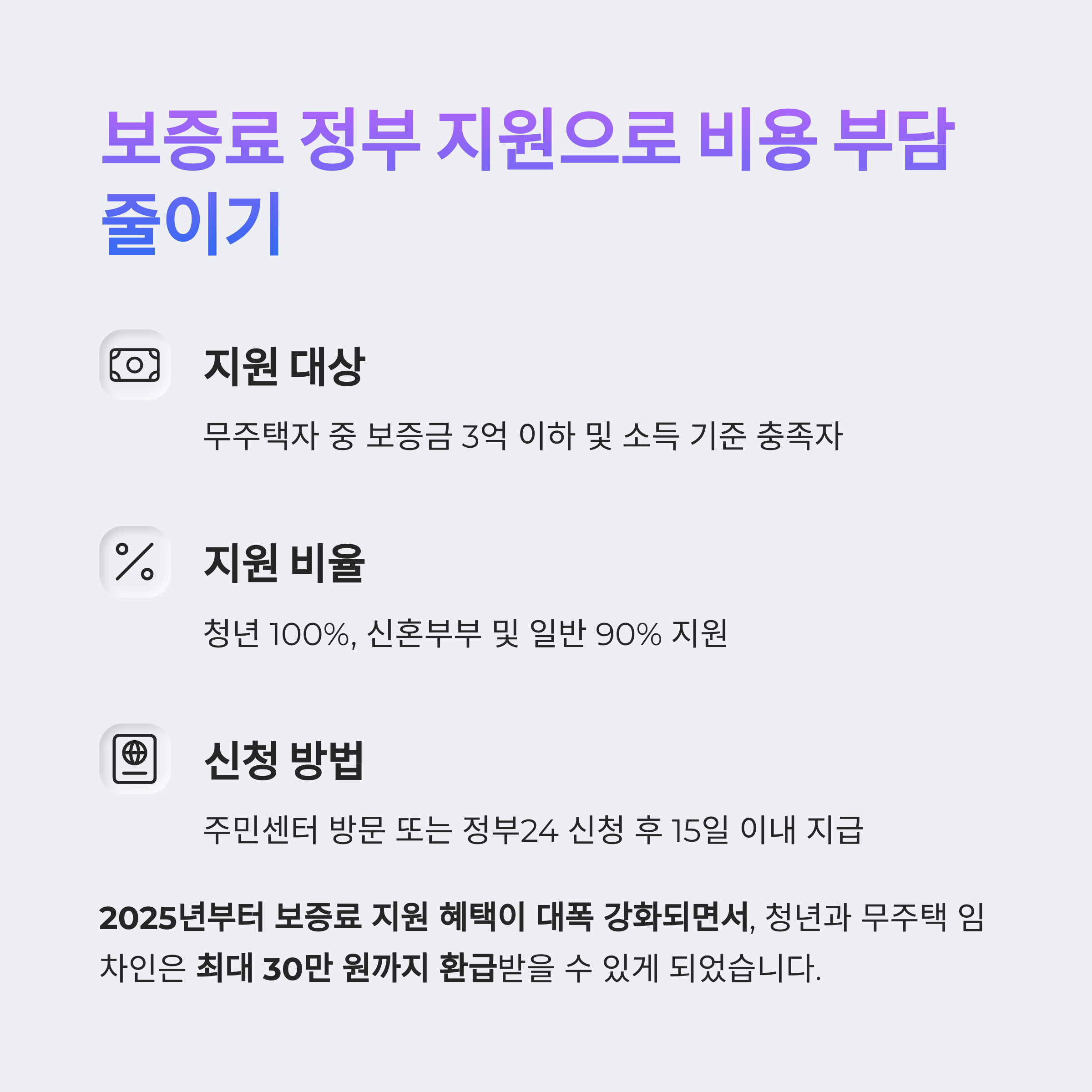 2025년부터 보증료 지원 혜택이 대폭 강화되면서, 청년과 무주택 임차인은 큰 혜택을 받을 수 있게 되었습니다.