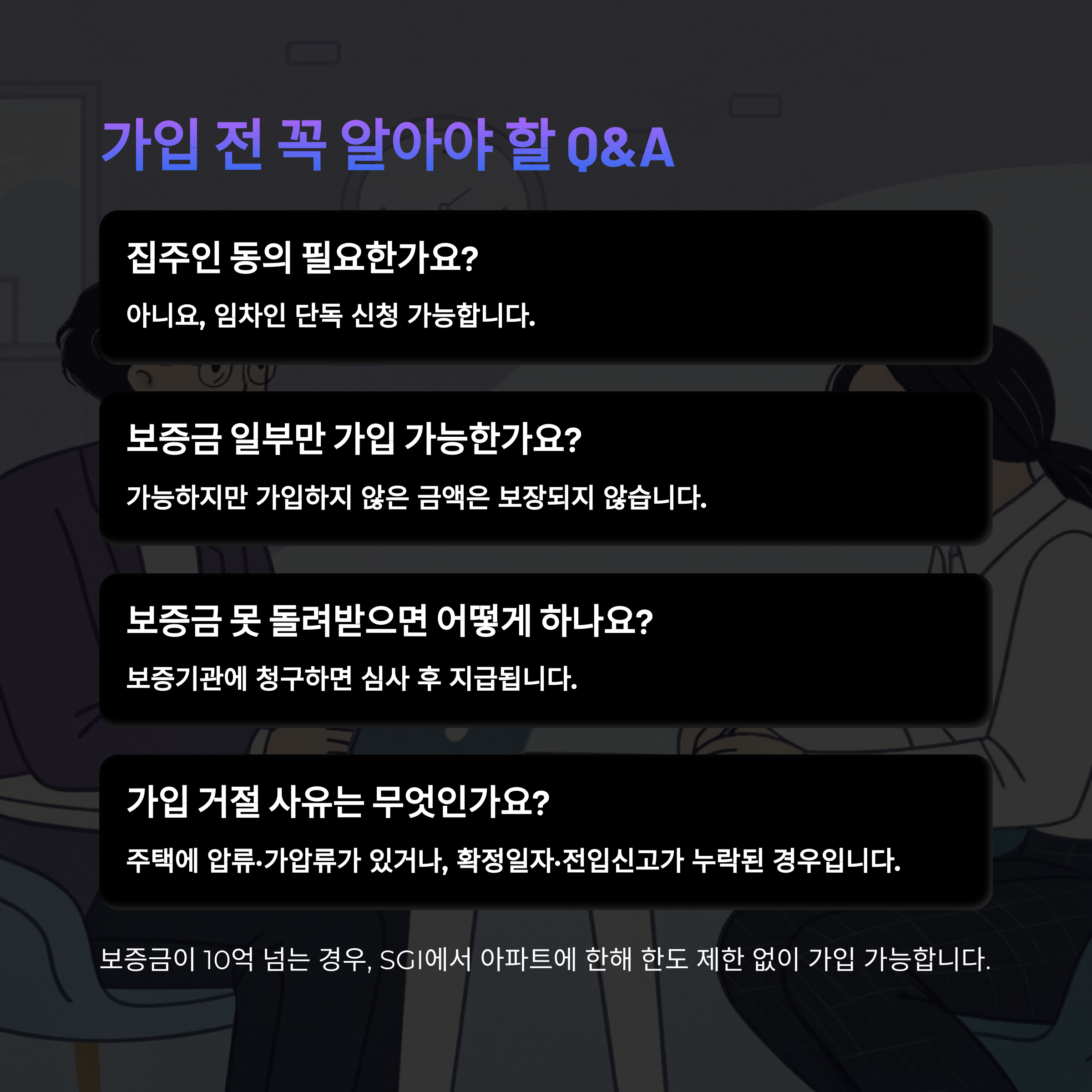 | 보증금 한도 | 수도권 7억, 비수도권 5억, SGI는 10억 또는 무제한 |