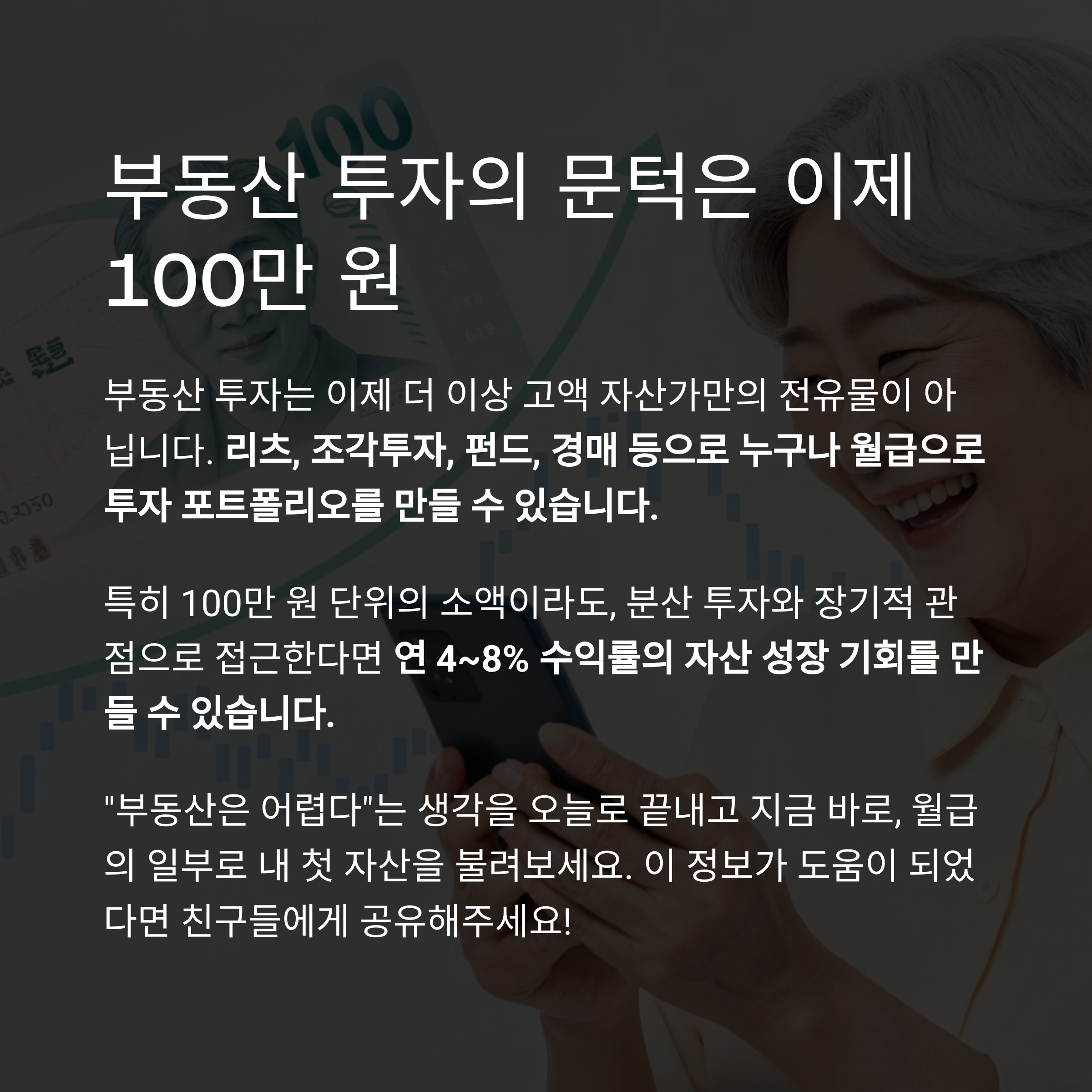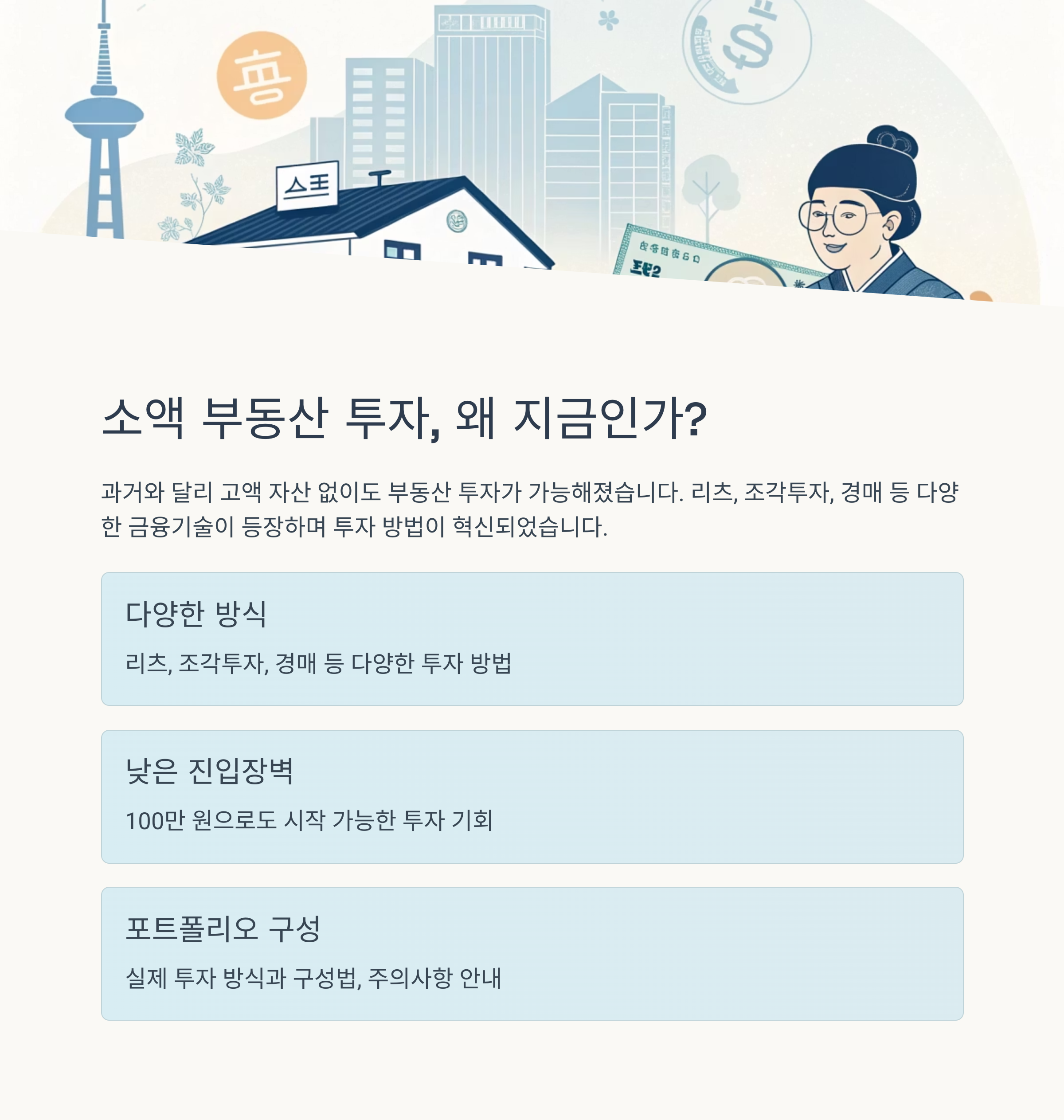 부동산 투자는 이제 더 이상 고액 자산가만의 전유물이 아닙니다.