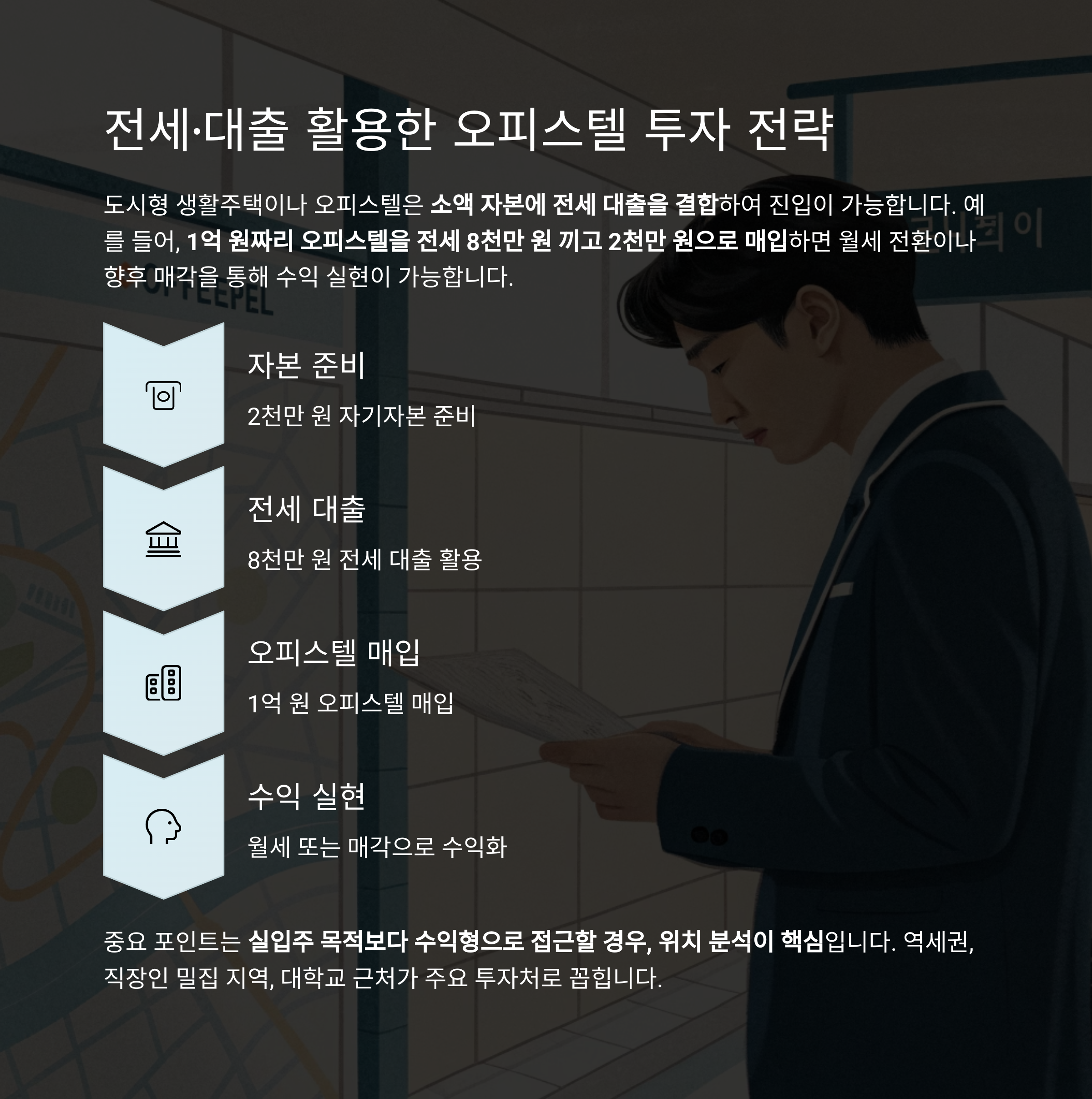 도시형 생활주택이나 오피스텔은 소액 자본에 전세 대출을 결합하여 진입이 가능합니다.